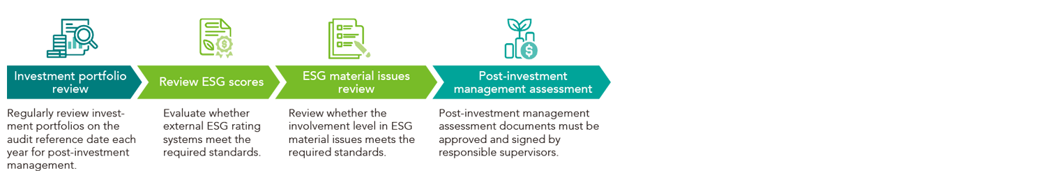 We have formulated a Responsible Investment Policy and Responsible Investment Regulations in accordance with the six PRI to guide our daily operations. Furthermore, we established a dedicated unit for sustainable investment in 2021, responsible for our sustainable investment strategy, policy formulation, and process optimization, and we actively participate in internal and external forums and training activities.