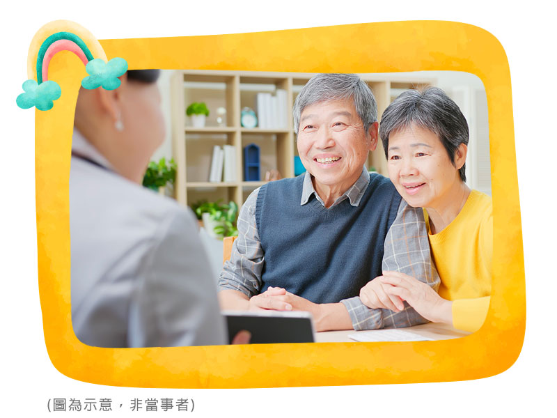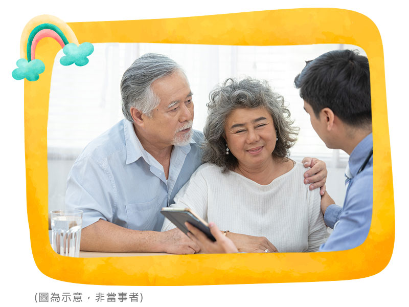 因年邁母親失智,讓林先生和林太太有了想要投保醫療險的想法。由於高齡必須體檢才能核保,因此夫妻兩人即前往體檢。檢驗結果出爐後,林先生順利核保,但太太卻意外的發現數據有異常,無法承保。即便未受理承保,同仁仍然鍥而不捨要林太太盡快進一步檢查,沒想到竟然確診為早期癌症。由於即時的發現,林太太目前復原的狀況很不錯,夫妻倆非常感謝同仁的熱心與積極,讓他們及早治療疾病,能夠更健康的度過未來的旅程。