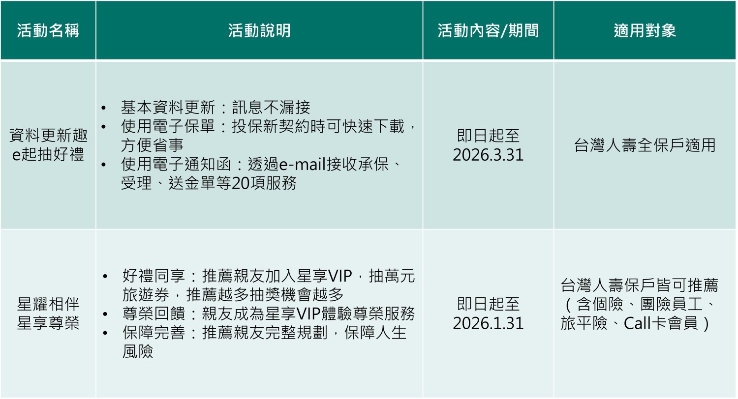 ▲台灣人壽「資料更新趣」及「星耀相伴 星享尊榮」活動整理